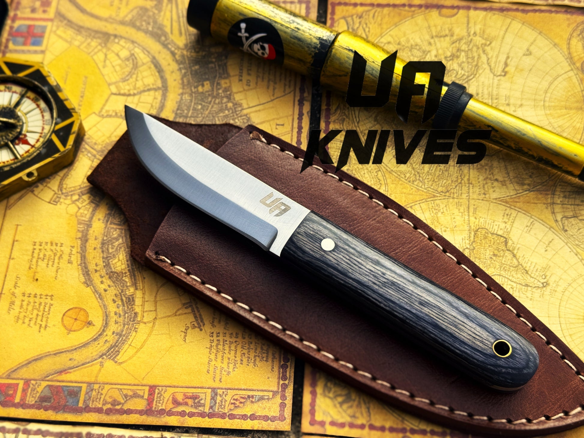 UA Eagle Eye - Hand Forged Pakku Style Full Tang Stainless Steel EDC Knife with Sheath